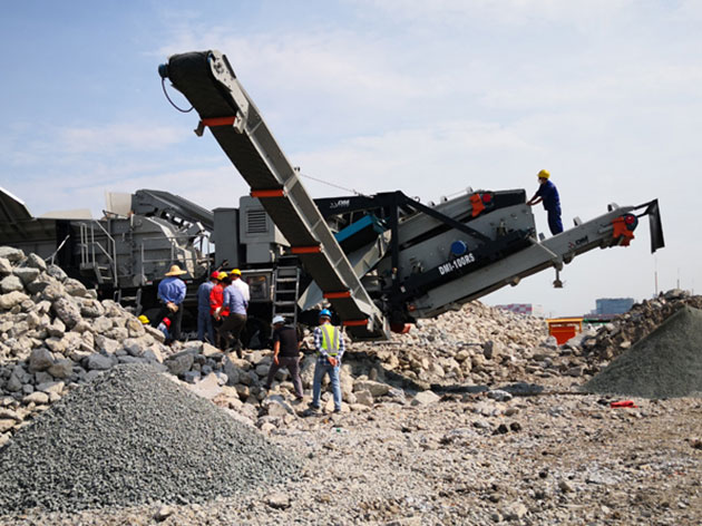 此項(xiàng)目客戶購(gòu)買(mǎi)了一臺(tái)DMI-130RS履帶移動(dòng)反擊式破碎站、一臺(tái)DMS-621C(三層篩),用于建筑固廢垃圾資源化再利用。主機(jī)采用高耐磨材料、大破碎腔