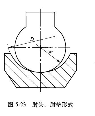 肘頭與肘墊的結(jié)構(gòu)形式,一般有兩種:滾動(dòng)型(滾動(dòng)副)和滑動(dòng)型(滑動(dòng)副),如圖5-21所示現(xiàn)以滾動(dòng)型為例,說(shuō)明肘頭與肘墊相對(duì)運(yùn)動(dòng)與受力情況(圖5-22)。在破碎機(jī)工作時(shí),破碎力的分力,經(jīng)肘墊壓向肘板最后由肘墊C支撐。與此同時(shí),動(dòng)顎通過(guò)肘墊給肘板一個(gè)擺動(dòng)力矩M,在此力矩作用下,肘板繞著C點(diǎn),從極限位置B1擺到極限位置B2在位置B1時(shí),肘頭滾到△點(diǎn)與肘墊接觸;在位置B2時(shí),肘頭滾到O點(diǎn)與肘墊接觸,如此往返運(yùn)動(dòng)。變肘頭與肘墊滑動(dòng)型為滾動(dòng)(圖5-23),根據(jù)對(duì)肘頭與肘墊相對(duì)運(yùn)動(dòng)分析可知若D越大,肘頭在肘墊里滾動(dòng)運(yùn)動(dòng)的區(qū)域也越大;若D-d越小,則肘頭在肘墊里滾動(dòng)D的區(qū)域也越?。蝗鬌-d很小,即采用配合尺寸,則肘頭在肘墊里幾乎處于完全滑動(dòng)此為滑動(dòng)副;若一“大到一定程度,可變滑動(dòng)為滾動(dòng),一般可取D-dD=0.35~0.4即可(圖5-23)。